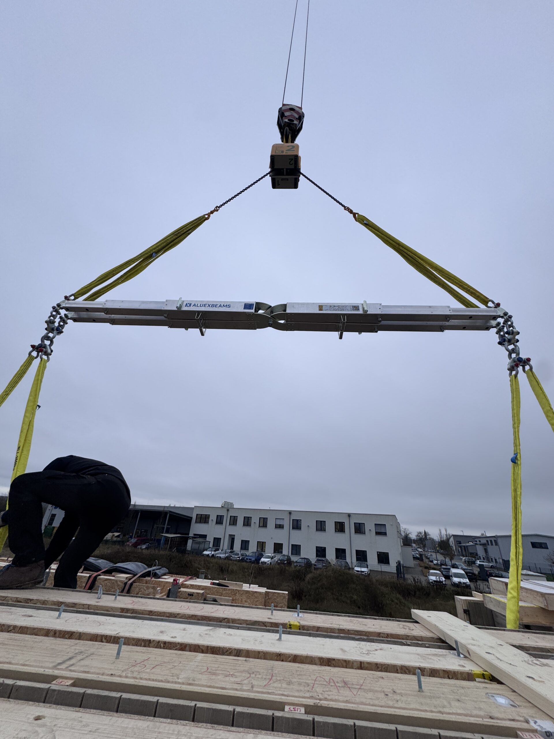 Insbesondere für Big Bags haben wir zusammen mit Aluexbeams den Typ Aluex2 entwickelt, geplant und entworfen. Mit nur 13 kg Eigengewicht und speziellen lastseitigem Haken zum einfachen einhängen der Hebeschlaufen der Big Bags: